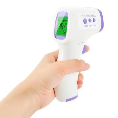 Diseñado para uso médico, el termómetro infrarrojo de frente sin contacto detecta rápidamente la temperatura corporal elevada y ayuda a detectar afecciones en pacientes sin hacer contacto directo. Adecuado para detectar fiebres, es perfecto para escanear pasajeros que llegan a aeropuertos, personal en empresas o para uso de profesionales médicos. Capaz de medir la temperatura corporal de 32ºC a 42°C con una precisión de + o – 0,3°C con una resolución de 0,1°C, debe usarse entre 3cm a 5 cm de la frente del paciente. Además es extremadamente fácil de usar; simplemente apunte el termómetro al sujeto, apriete el gatillo y la temperatura se mostrará en la pantalla LCD incorporadaCARACTERÍSTICAS